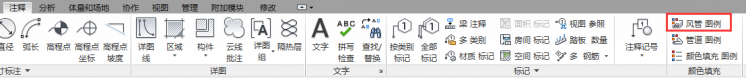 1、轉(zhuǎn)到需要檢查的樓層平面,在“注釋”選項(xiàng)卡下選擇“風(fēng)管圖例”,如圖所示。