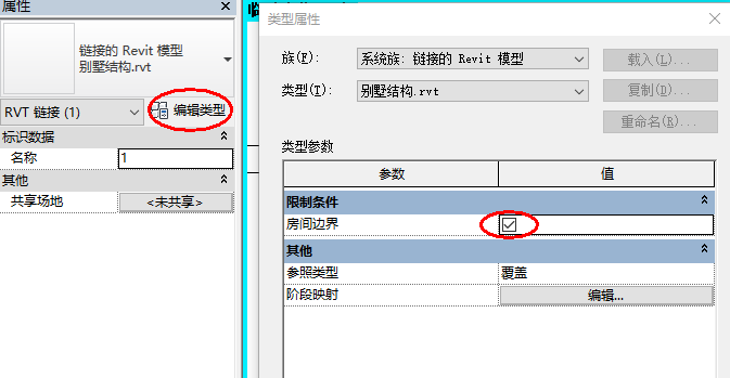 1、選中鏈接模型,編輯類型,勾選房間邊界,如圖所示。