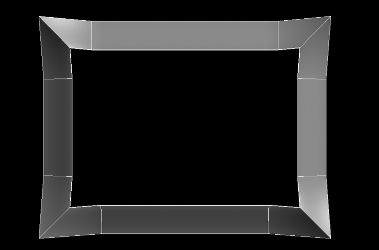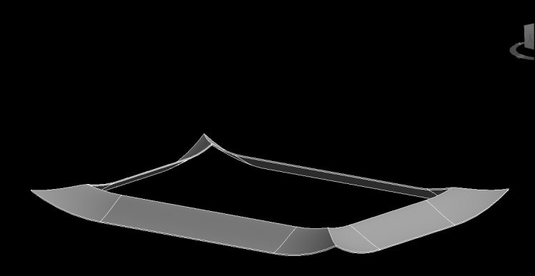 3、完成空心旋轉,另外三個角相同方法**,使四個角形成向上翹曲的線條,如圖所示。