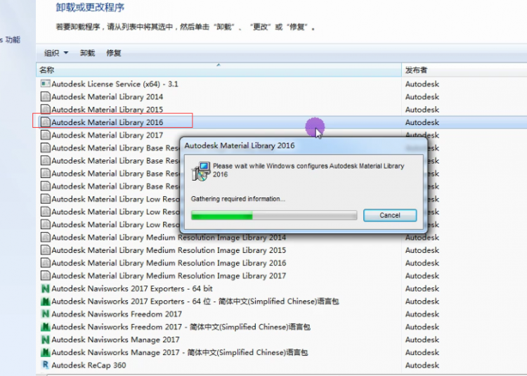 注意:在新安裝完軟件之后,打開軟件也會有材質庫打不開的情況,可以嘗試重啟軟件,若不行,再考慮材質庫的重新安裝。安裝完成之后重啟軟件。第二種情況:自身材質庫文件損壞1、在電腦系統中找到這個材質庫程序進行修復,如圖所示。