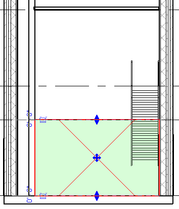 請注意,此時出現兩個拖曳控制柄(頂部和底部)及相應的關聯尺寸。 拖曳控制柄和尺寸標注指明了選定空間的垂直長度。 上方的拖曳控制柄和尺寸標注指明高度偏移。下方的拖曳控制柄和尺寸標注指明底部偏移。