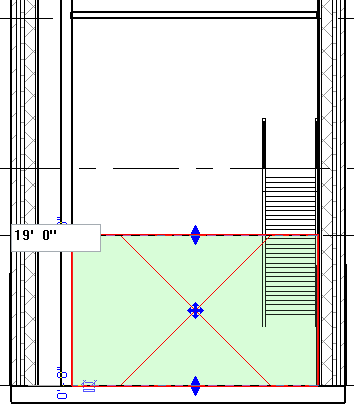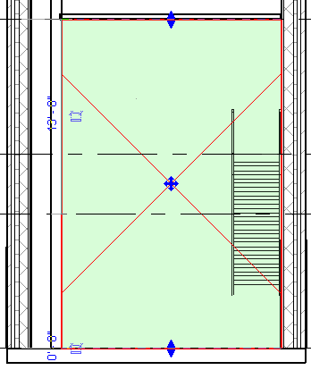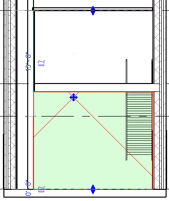 如果垂直長度超過房間邊界圖元(例如樓板或天花板),空間將捕捉到房間邊界圖元。 但是,拖曳控制柄和關聯尺寸將指明指定的垂直長度,如下圖所示。