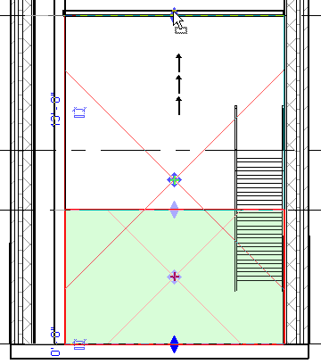 請注意,此時出現兩個拖曳控制柄(頂部和底部)及相應的關聯尺寸。 拖曳控制柄和尺寸標注指明了選定空間的垂直長度。 上方的拖曳控制柄和尺寸標注指明高度偏移。下方的拖曳控制柄和尺寸標注指明底部偏移。