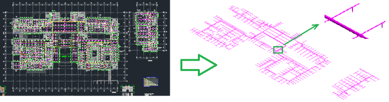 橄欖山風系統翻模和噴淋管道翻模,能夠利用現有的DWG圖紙快速高效的在Revit中轉化成模型。 機電深化工具專門針對設備管線綜合而開發,碰撞工具讓管綜檢查和出具報告可以直接在Revit中完成。