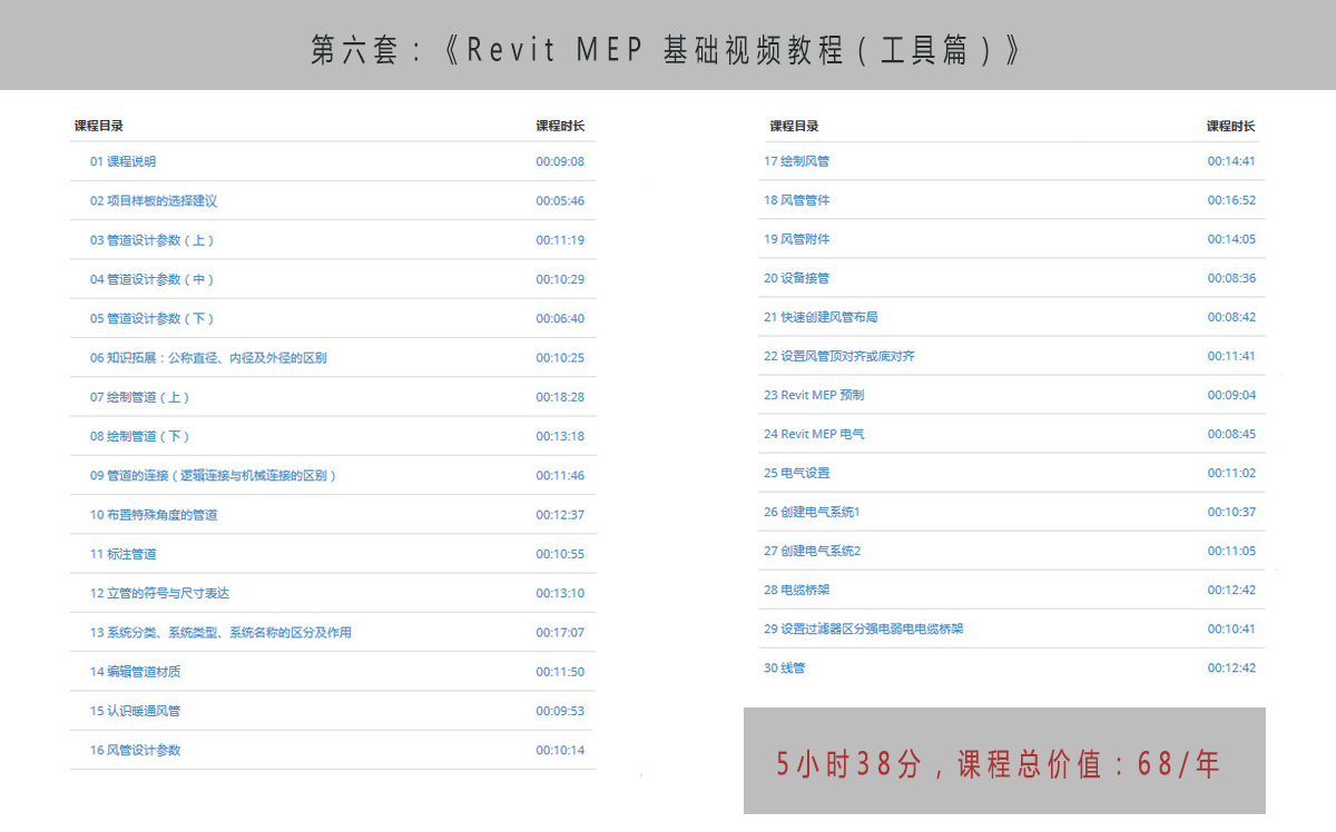 《Revit MEP 基礎視頻教程(工具篇)》 課程原價:58元/年,課程時長:05:38:28